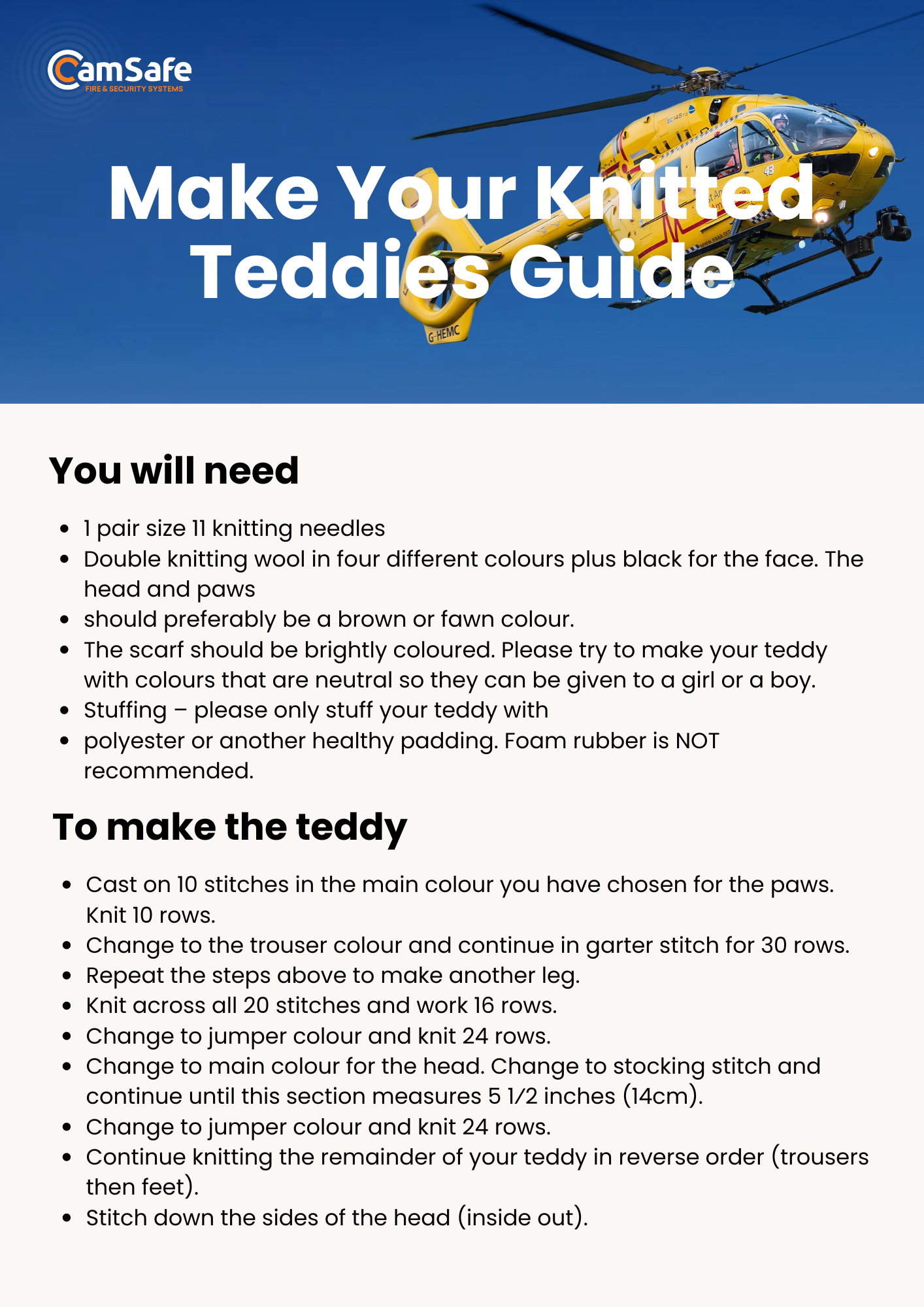 At CamSafe, we endeavour to give back to our community and are proud to be supporting the East Anglian Air Ambulance, aiming to raise money and knit as many teddies as we can to donate to them.